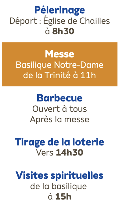 Que vous choisissiez de marcher en pèlerinage depuis l’église de Chailles ou de nous rejoindre directement pour la messe, chacun est le bienvenu.
